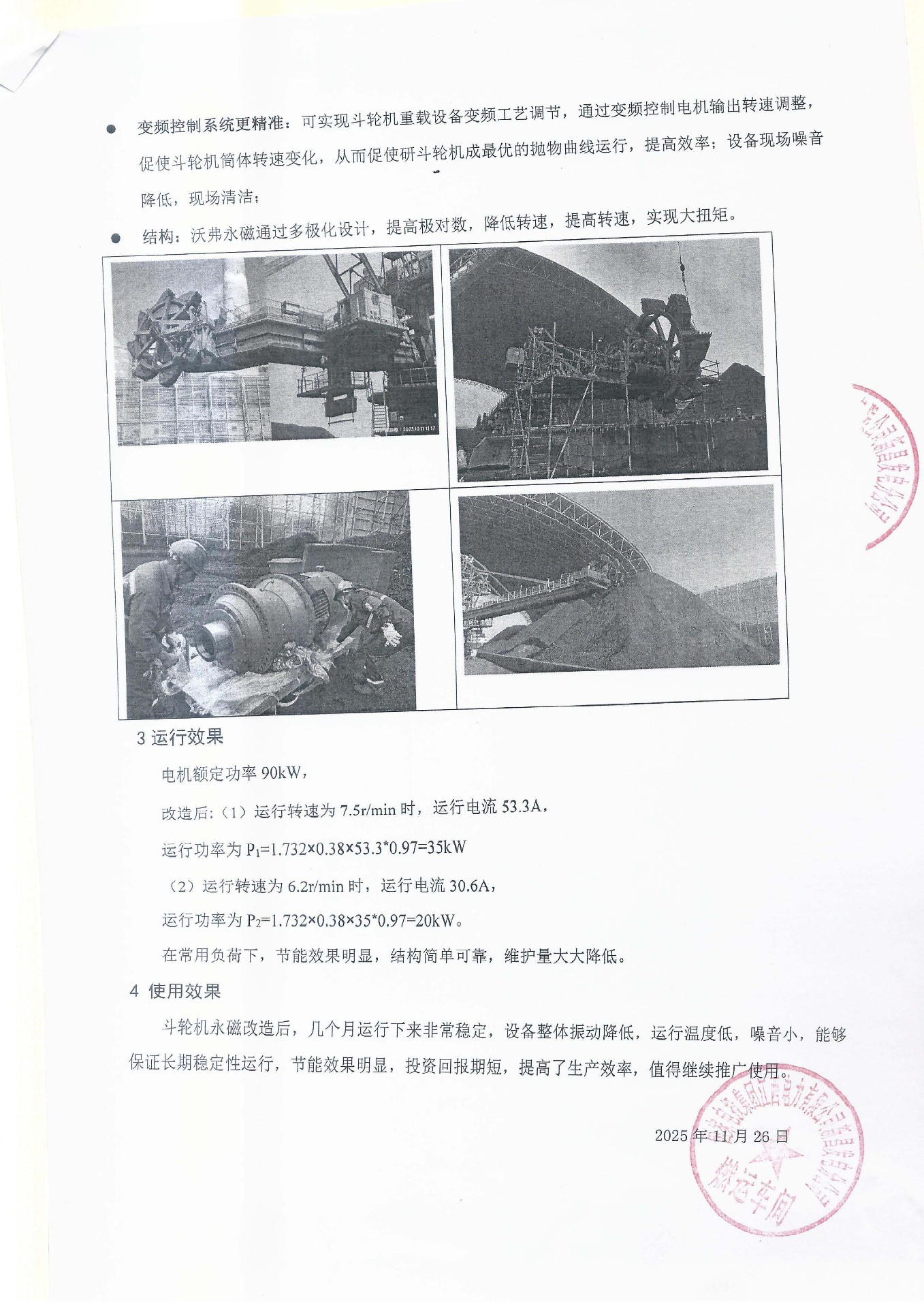 唐山冀东启新水泥有限责任公司11B03原料上辅料皮带机节能改造使用报告